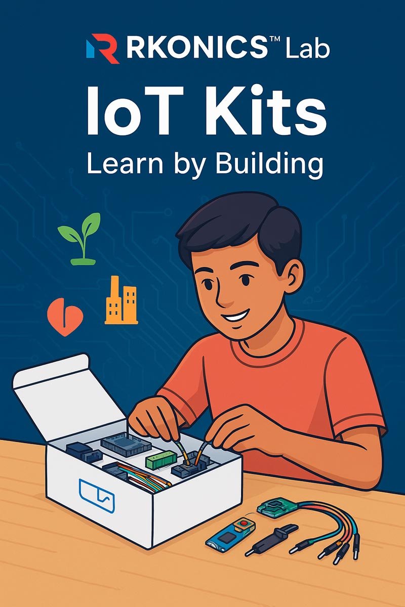 The Smart Agriculture IoT Kit online in India by RKONICS Lab helps students and innovators explore smart agriculture with IoT. Learn soil sensing, irrigation automation, and build smart farming prototypes using NodeMCU, relay, and sensors.